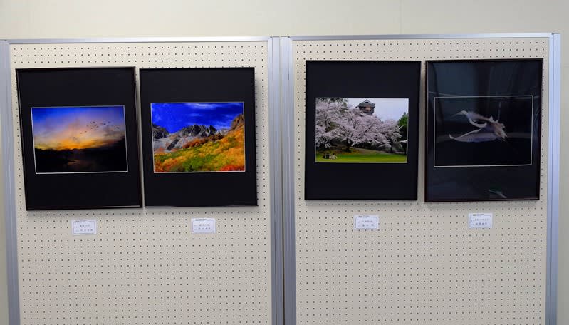 NTT西日本熊本支店1階正面玄関のOBギャラリーで「写友会」会員が作品4点を展示しています。