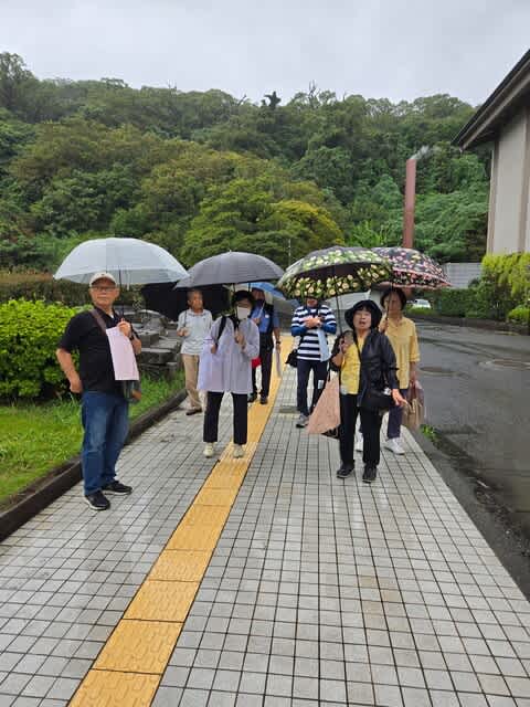 当日は出発前から雨模様で、目的地に向かうバスのフロントガラスを激しく叩く大雨となりました。