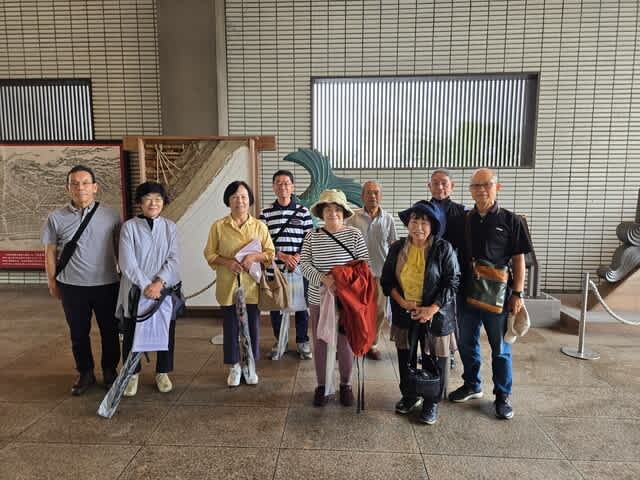 紹介がありました。次に指宿市街を抜け山川湾に向かいました。山川湾(港)は、5700年前の