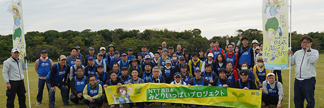 NTT西日本グループでは、年間約20億kWhの電力エネルギーを使用しており、電力エネルギーを大量に使用する企業の責務として消費電力の削減に加え、地球環境保護にも積極的に取り組んでいく必要があり、NTT西日本宮崎グループにおいても、NTT西日本管内全府県統一的な環境保全活動である「みどりいっぱいプロジェクト」を積極的に推進し、環境負荷軽減に貢献していくこととしています。