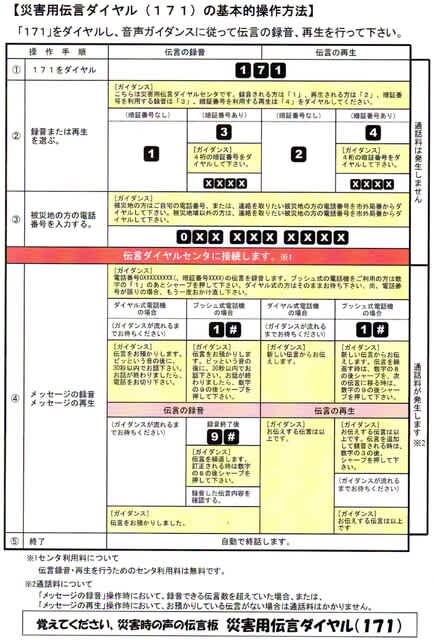③災害時の家族との連絡網として、「災害用伝言ダイヤル(171)の利用」しましょう。