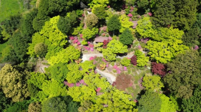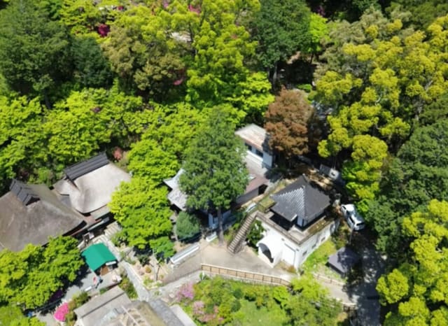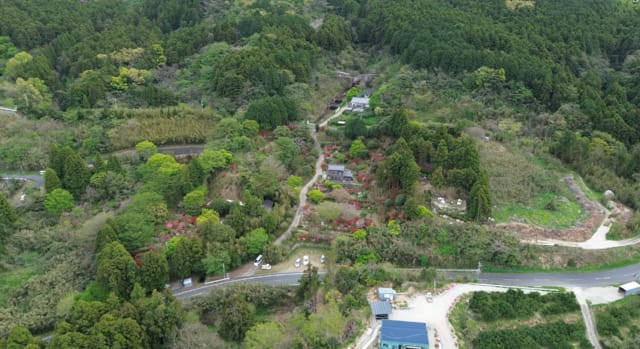 されています。 上空から見るとモミジの新緑にツツジが覆われています。