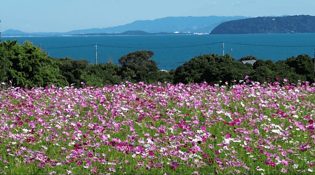 また、田園風景は、田んぼ、彼岸花、街並、海のコントラストがとても良いですね。