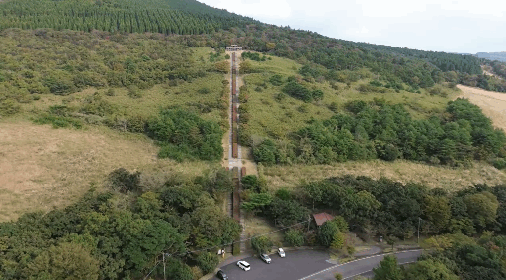 湧水町の栗野岳には、旧国鉄山野線の枕木約7,000本を再利用した「日本一の枕木階段」があります。左右に分かれた階段はそれぞれ561段と555段です。