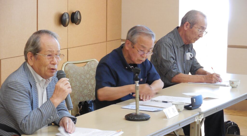 支部長の挨拶の後、幹事交代に伴う自己紹介に続き「議事」に入った。