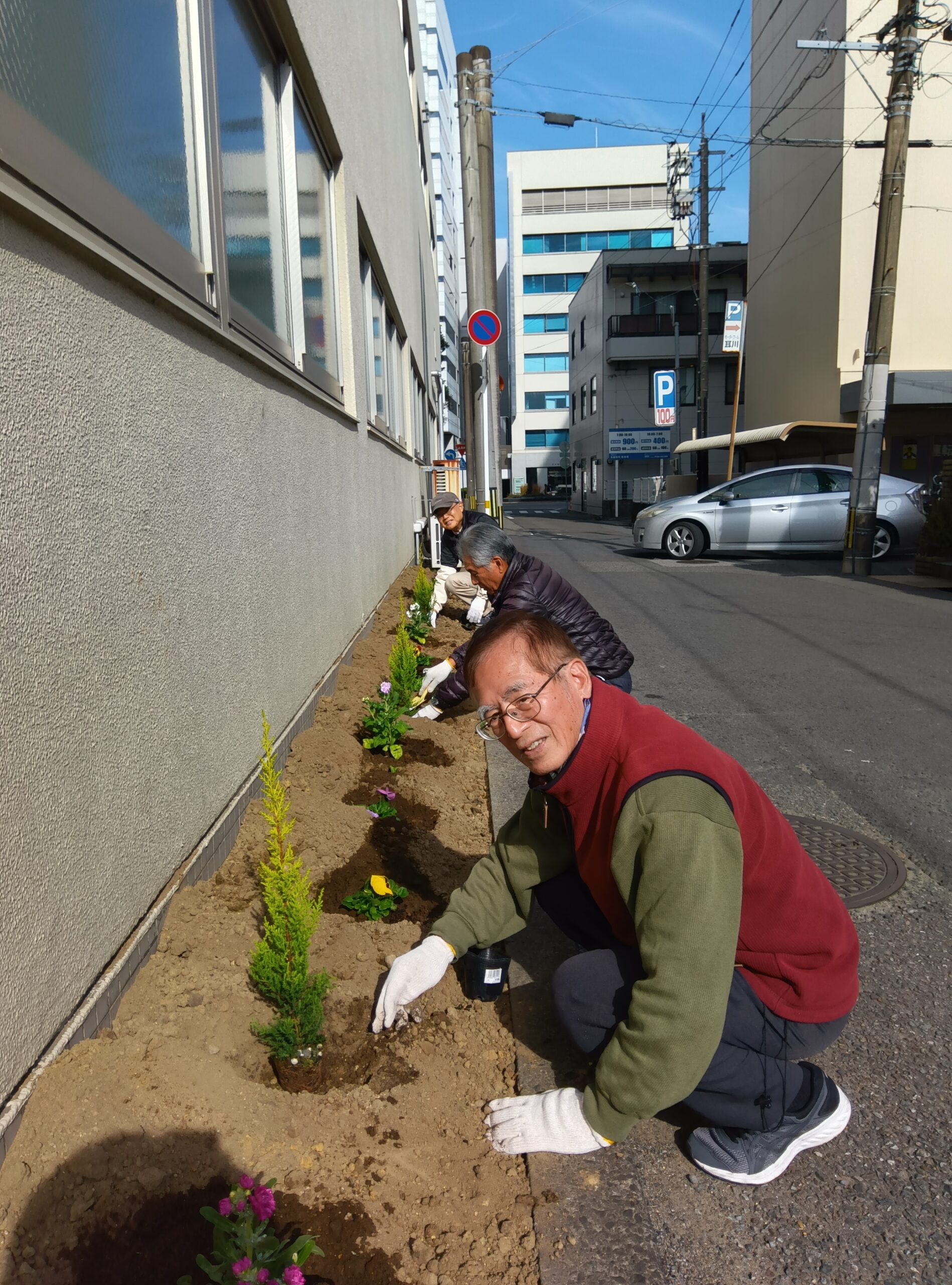 令和7年12月10日(水)午前10時半から、宮崎地区地球温暖化防止推進グループにより、ハロウ高千穂通と広島通を結ぶ、NTT広島ビル東棟 東側通りの花壇に「街の賑わいの一助になれば」とパンジー等の花🌸🌲を植栽しました。