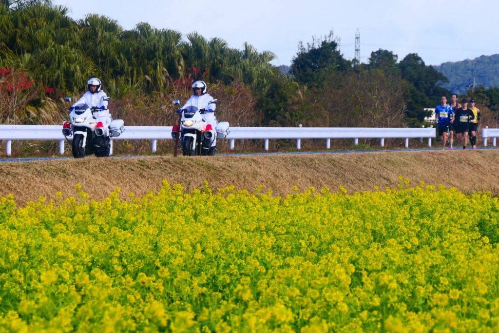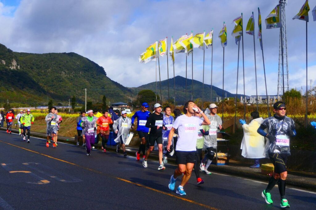 小雨、晴れたと思えば、また小雨、悪天候の南国指宿でしたが、1万人超の皆さんが早春の菜の花路を駆け抜けました🎵