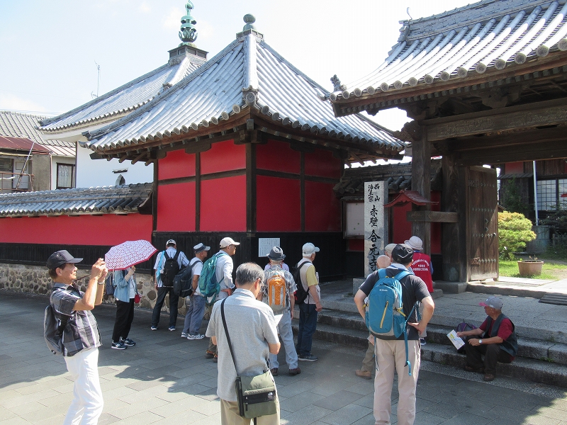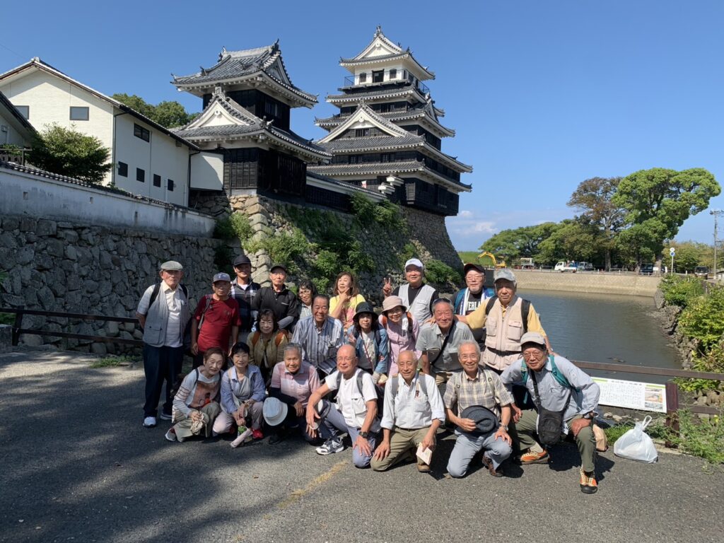 朝夕は涼しくなってきましたが、日中はまだまだ暑い日が続く今日この頃です。 天気予報が外れ秋晴れとなった10月8日(水)11時10分に集合した例会参加者は21名。今回は中津耶馬溪観光協会にガイドさんをお願いしました。コースの説明後、JR中津駅をスタートし、①赤壁寺と呼ばれる合元寺、②学問のすすめ・一万円札で有名な福澤諭吉の旧居を巡り、二の丸公園で、③黒田官兵衛が建てた中津城(昭和39年再建)の説明を受けた後、昼食を取り帰路につきました。3kmのウォーキングでしたが、城下町中津の歴史を少し知ることができました。また、お土産は唐揚げ、外郎などを購入する方が多かったです。参加された皆さんお疲れ様!!