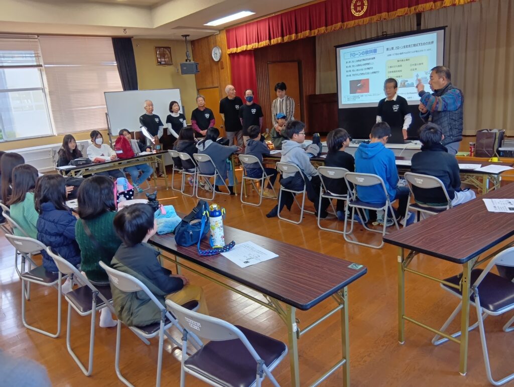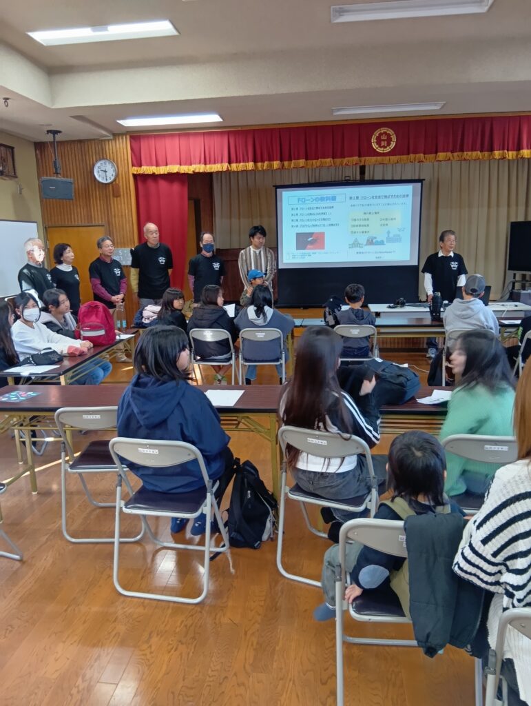 令和8年1月18日(日曜日)に久留米市山川校区コミュニティーセンタで「ドローン教室」を開催しました、これは久留米市山川校区地域づくり振興会からの依頼によるもので小学生20名の受講者と多数の保護者が参加されました。
