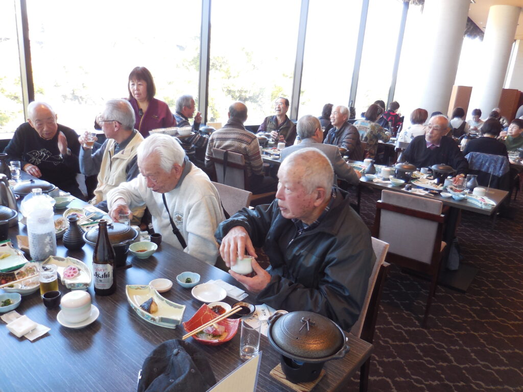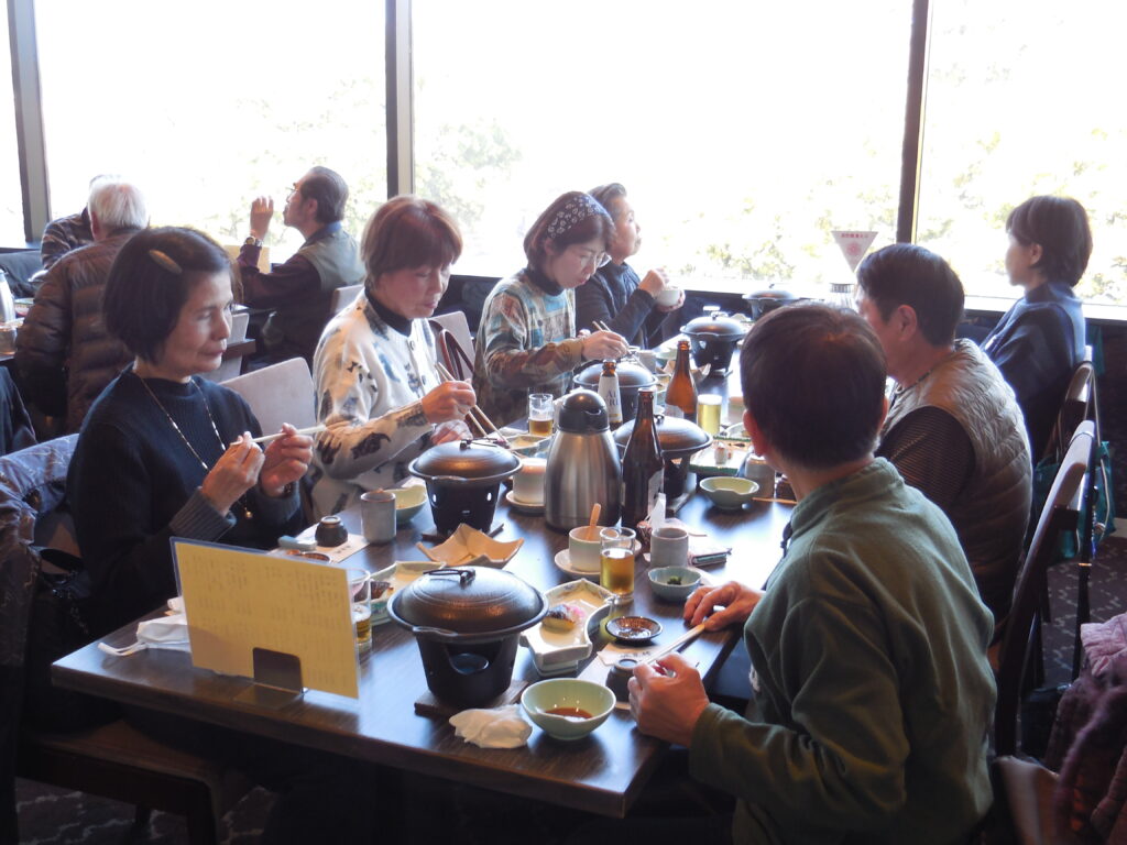 最初に「藤崎八幡宮」に詣り・・・ 昼食は「城見櫓」(熊本城長塀前)から熊本城を眺めながらの「昼食兼、新年会」郷土料理に舌鼓を打ち~お酒も入り短時間でしたが賑やかで楽しい時間を過ごしました。